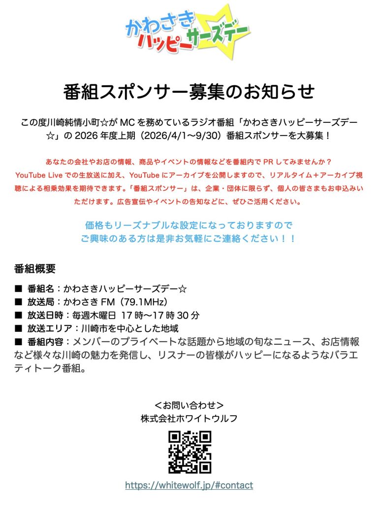 お知らせ: 2026.03.10 3/14、第3回 カワけっと に出演!ホワイトデー企画もあります! 2026.03.01 決定!!小町ダンス・セレクション2026 〜選ばれし春の3曲総選挙〜 2026.02.23 中間発表!! 小町ダンス・セレクション2026 〜選ばれし春の3曲総選挙〜 2026.02.20 2/21、横浜魚市場presents「地産地消」LIVEと、横浜中華街「祝舞遊行」の2本立て!! 2026.02.14 3/16、塙瑠香生誕祭2026『#Ruka with Me〜No Ruka No Life〜』開催! 2026.02.14 キミが決める!小町ダンス・セレクション2026 〜選ばれし春の3曲総選挙〜 2026.02.04 蜂須賀ゆず生誕祭&卒業ライブ "ゆずらない証明〜心を込めてありがとう〜"、ご来場ありがとうございました! 2026.01.25 2/8、川崎純情小町☆×ドン・キホーテ溝ノ口駅前店バレンタインコラボイベント開催! 2026.01.22 『ありがとう!川崎純情Night☆』2025年映像集&フォトブック締切間近のお知らせ 2026.01.18 1月29日はいよいよ、蜂須賀ゆず生誕祭&卒業ライブ "ゆずらない証明〜心を込めてありがとう〜"! 2026年2月〜新体制! VIDEO And more... RADIO 2026年度上期 ラジオスポンサー募集中! 2025年度 活動スポンサー author